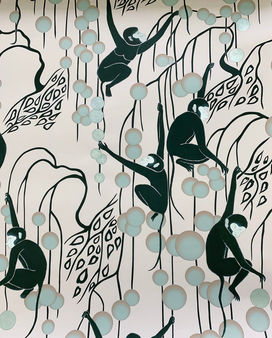 Monkey Chinoiserie Panels, Gilded wallpaper, Monkey wallpaper