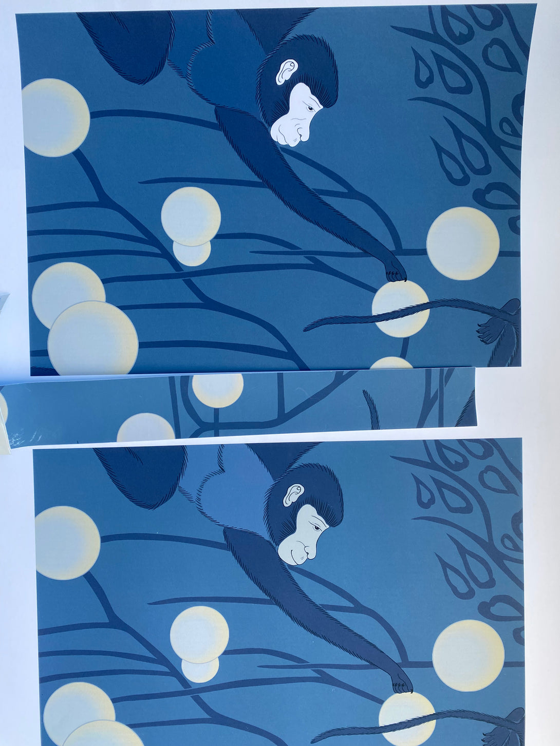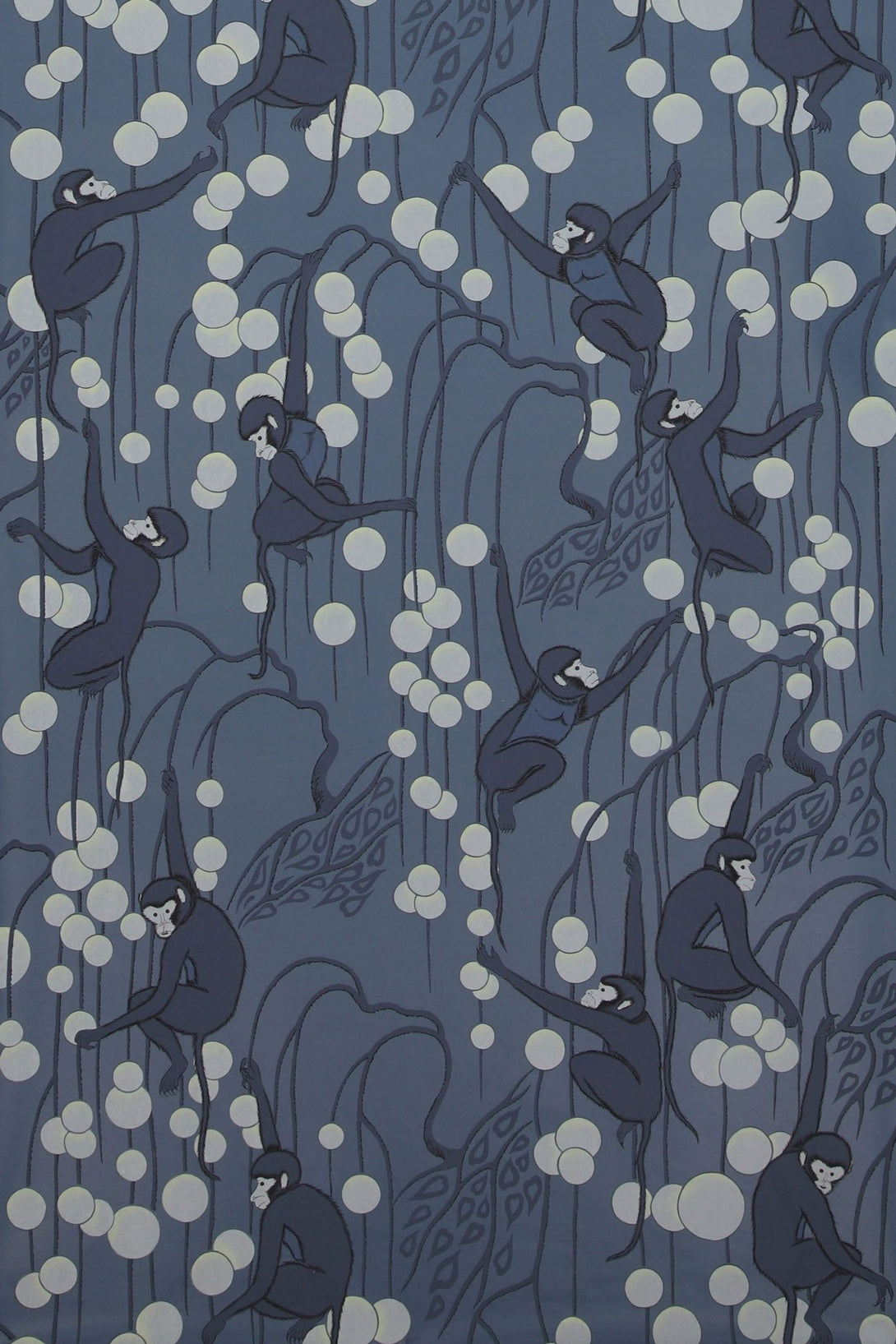 Chinoiserie Panels, prints wallpaper, Wall Art, Wall Decor, Wall Decal, Wall Hanging-- Blue Monkey wallpaper