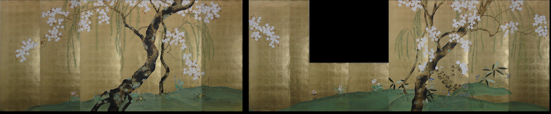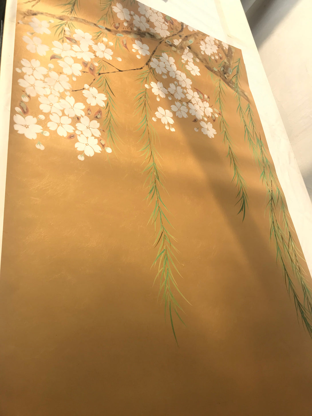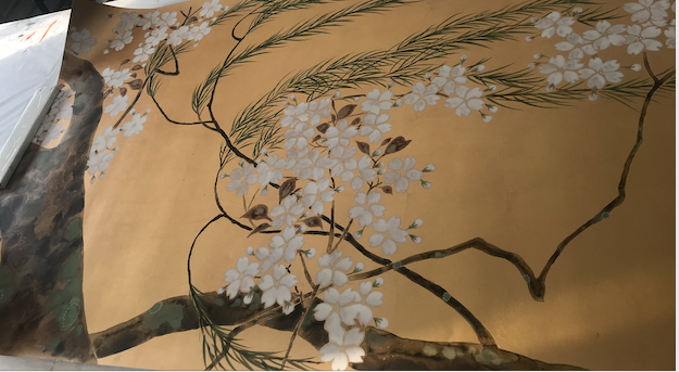 Japanese Garden Hand painted Wallpapers on antiqued metallic