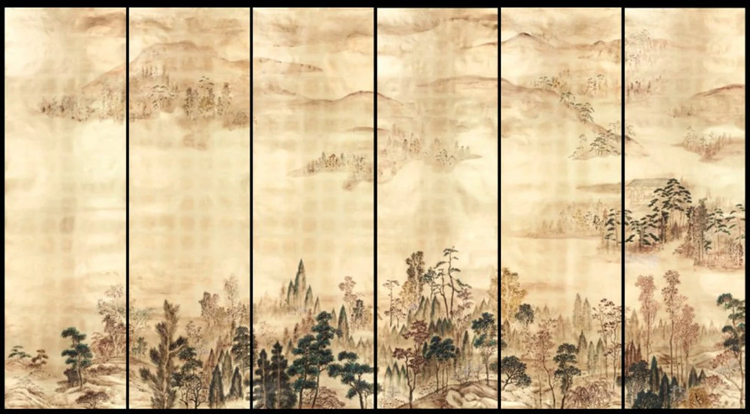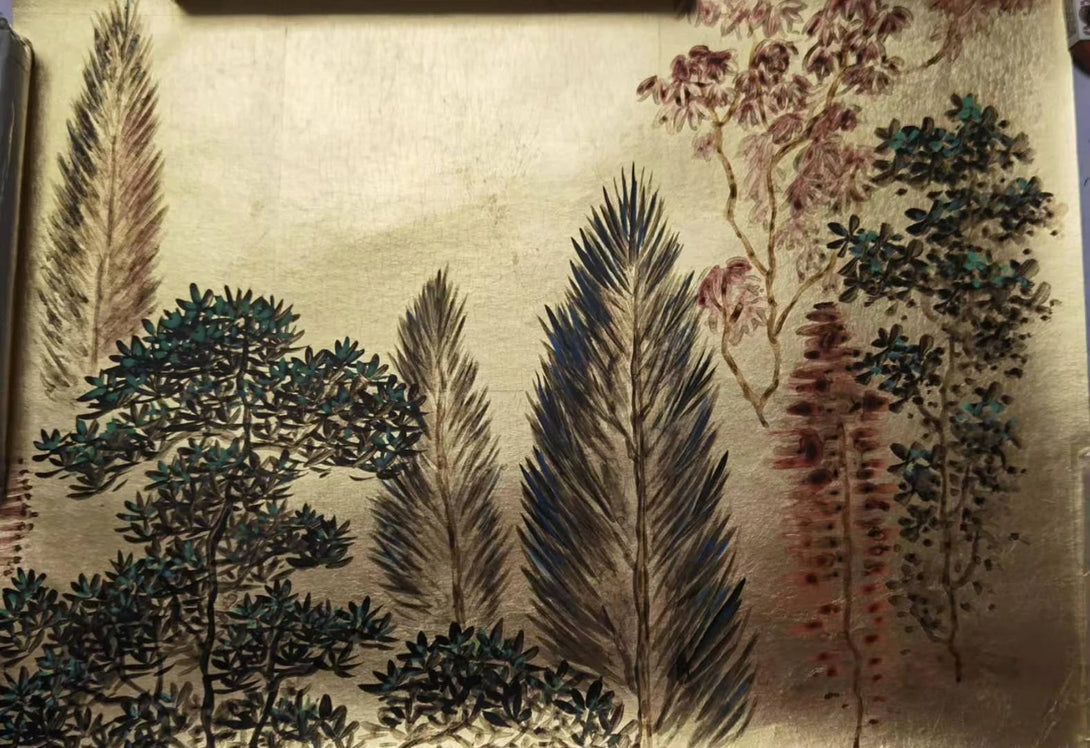 Japanese Garden Hand painted Wallpapers on antiqued gold metallic
