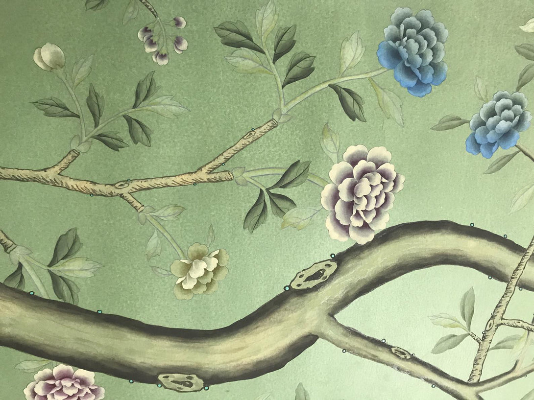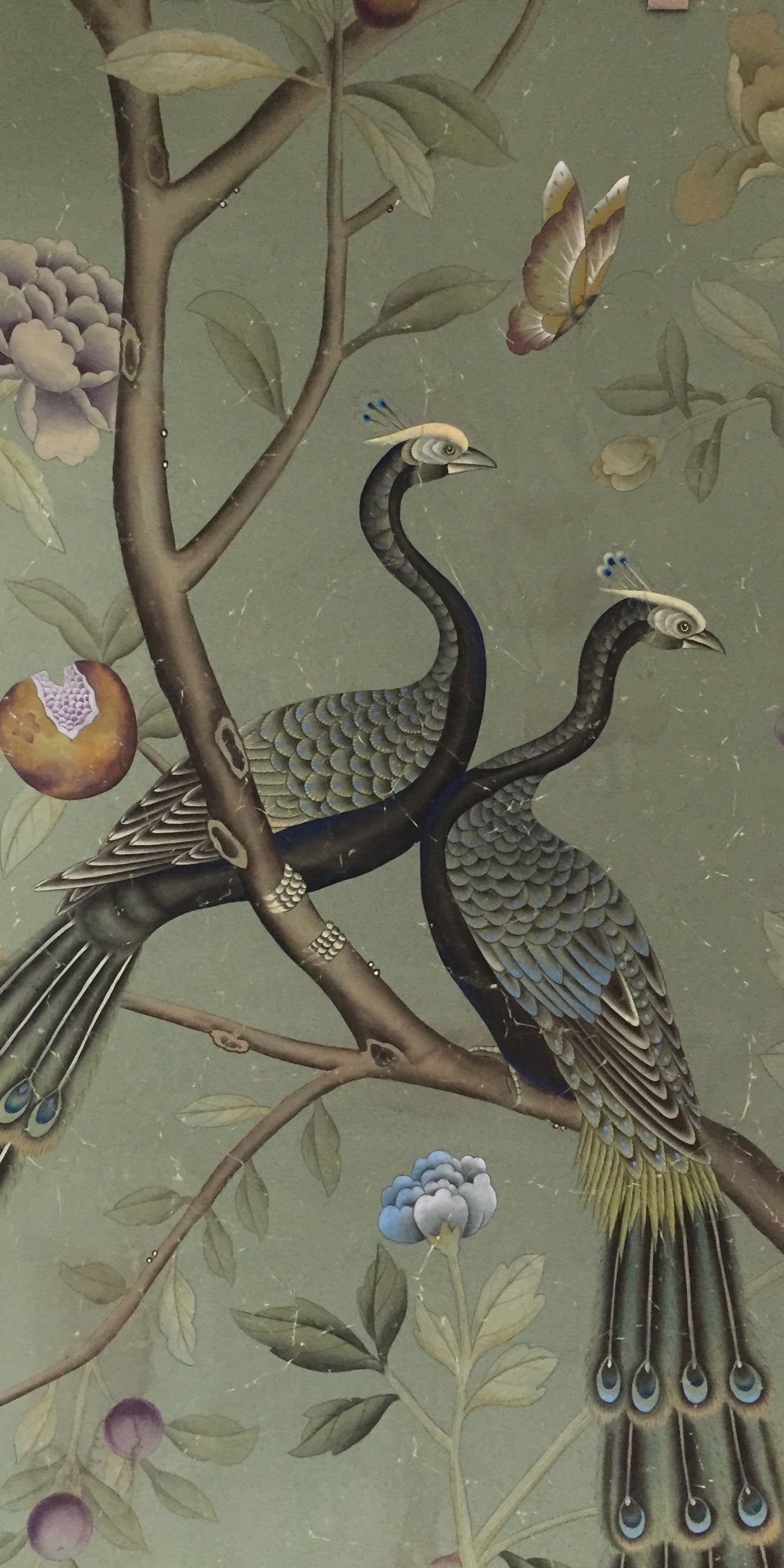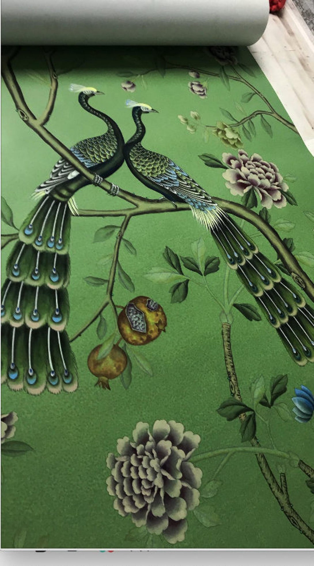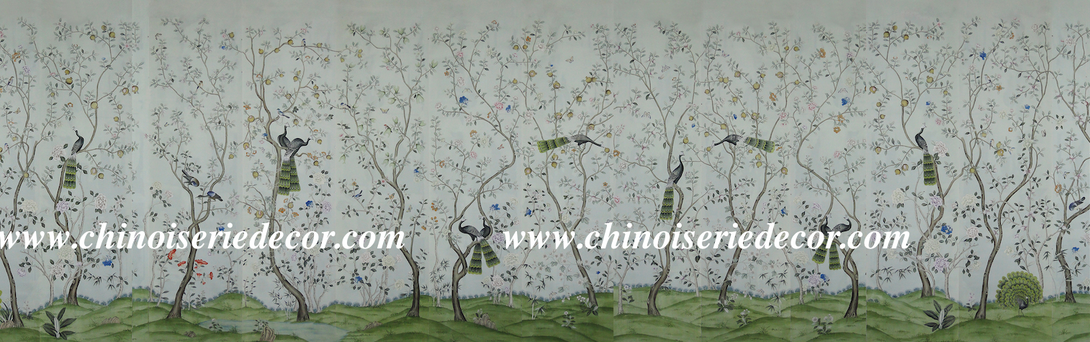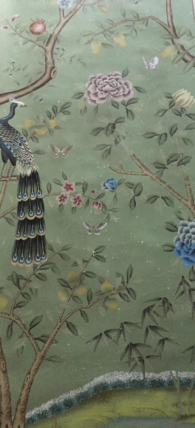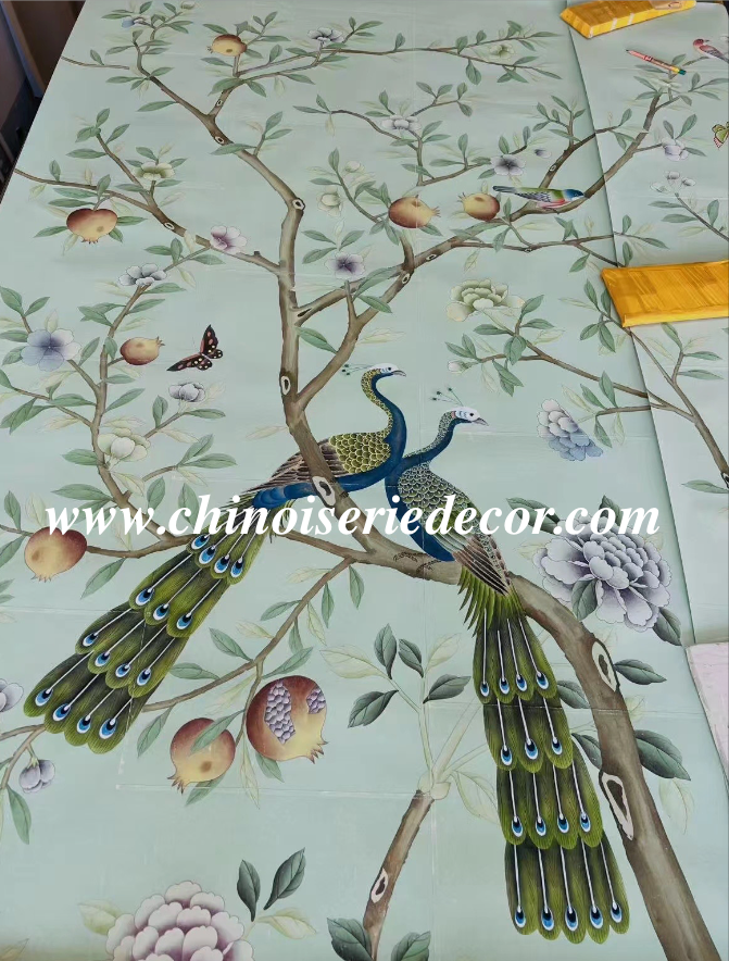Peacock Chinoiserie Wallpaper Hand Painted Wallpaper on Edo Silk