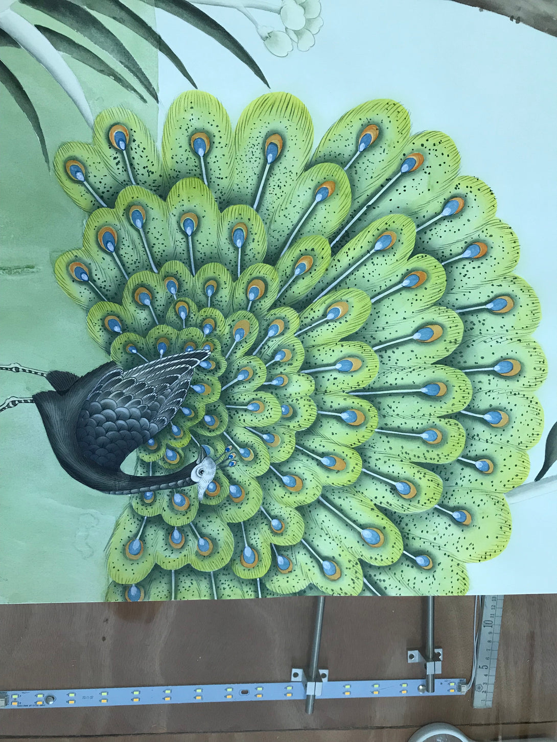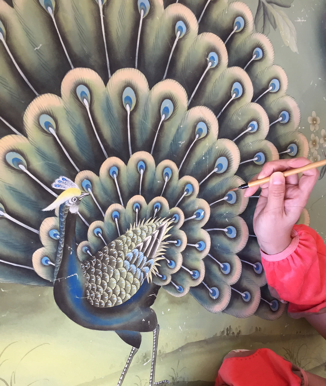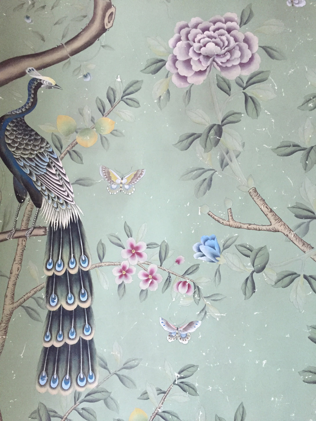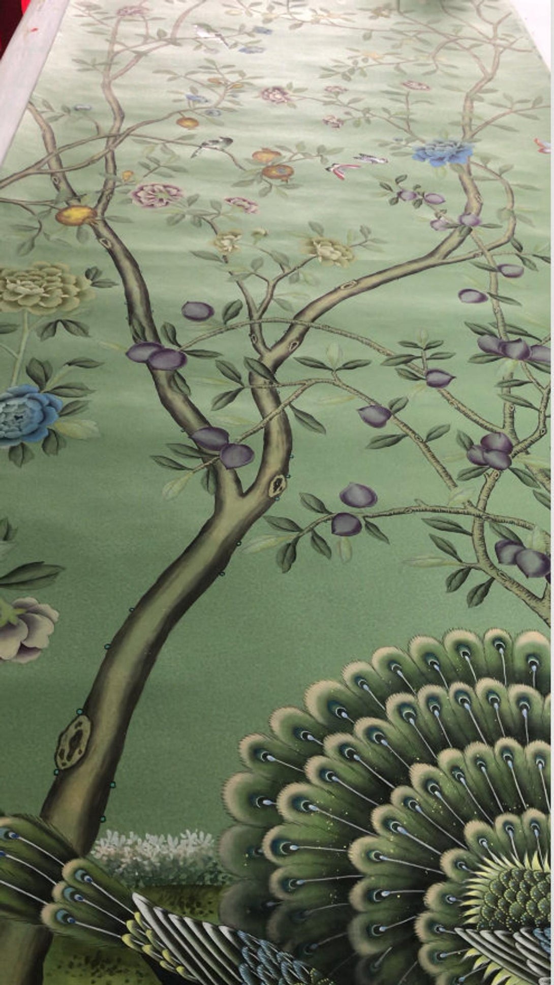 Peacock Chinoiserie Wallpaper Hand Painted Wallpaper on Edo Silk