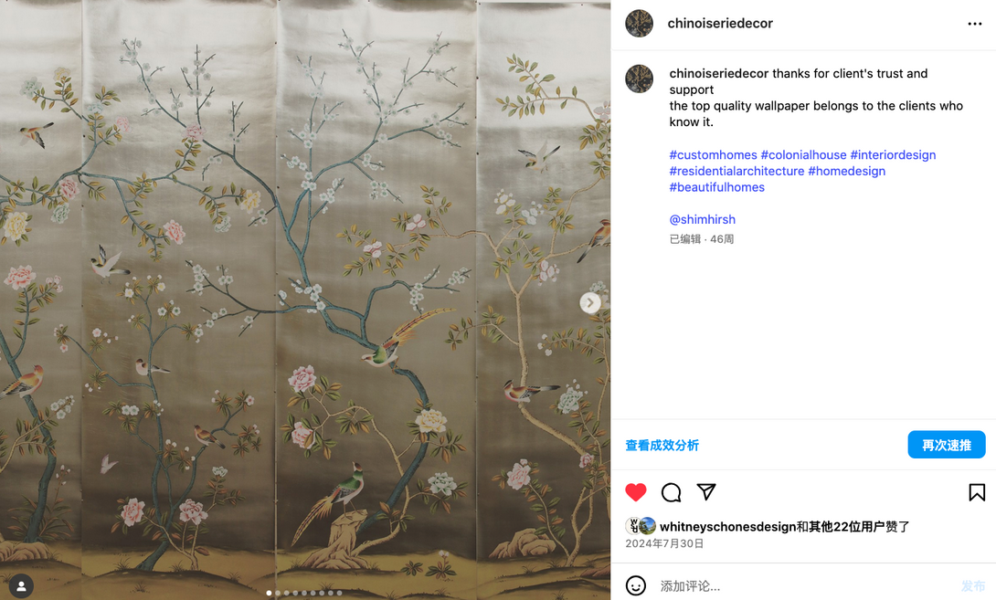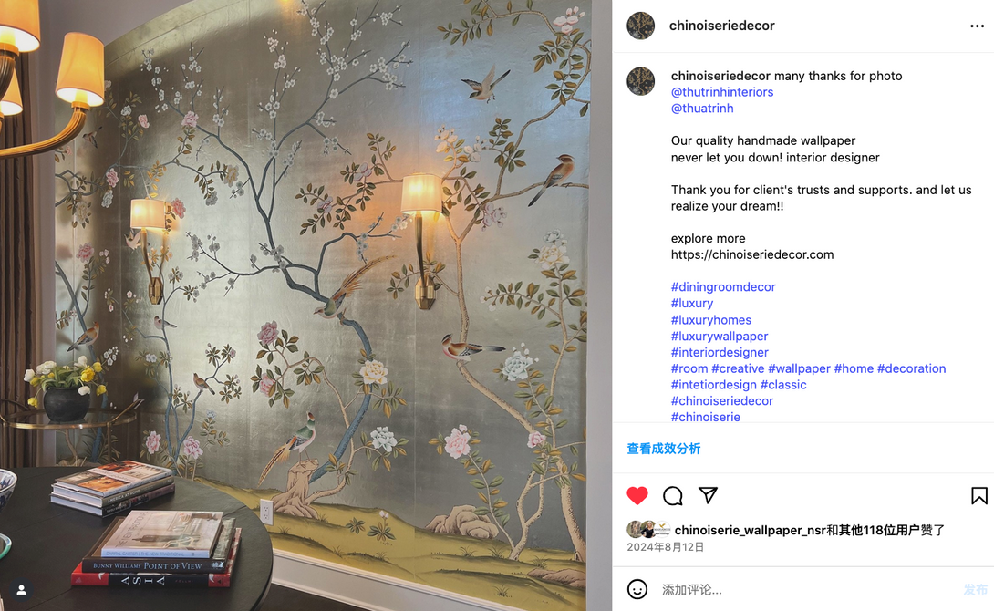 This is a high-end product that we tailor-made for interior designers who just asked for the top quality wallpaper. It is painted by our senior artists. The quality of this set of products represents the highest level of our metallic foil wallpaper painting. This is not a quality that imitation products can compare with. If you are a high-end designer If you are a designer or design company, you can order this product, which will definitely make your design more elegant. The production time of this product is 2 weeks longer than the normal wallpaper, the material is take 2 weeks to produce it, If you are a customer who can't wait, you can choose the normal products.