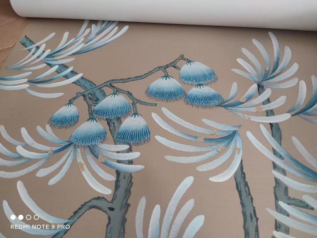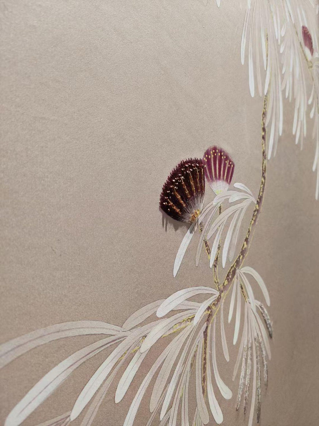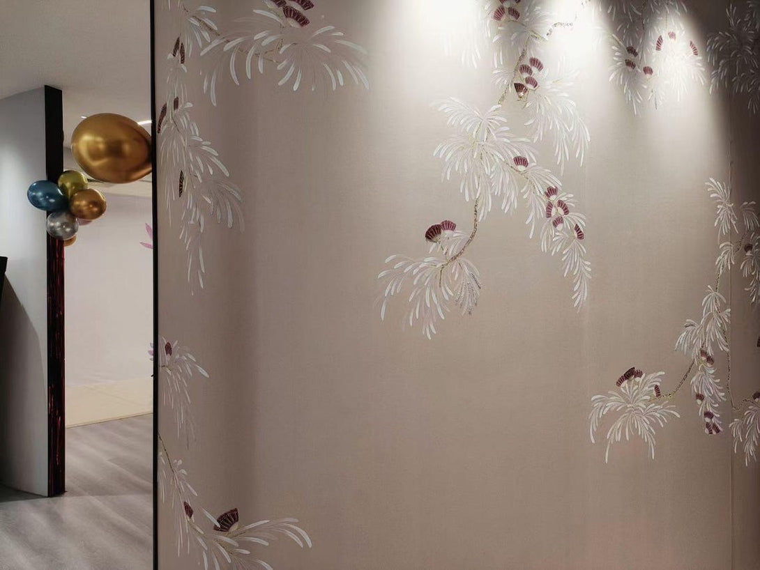 Hand-painted and partial embroidery wallpaper (Dyed-Silk)