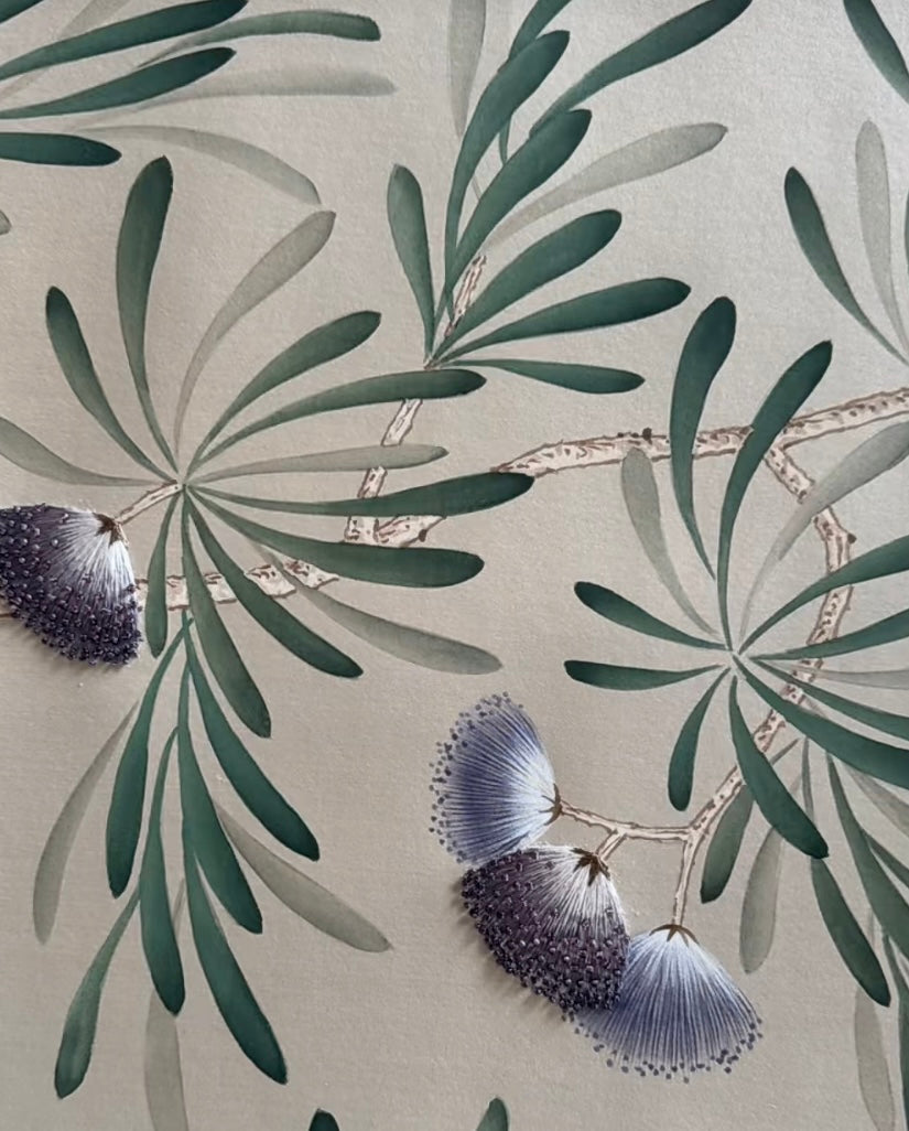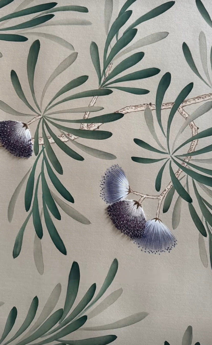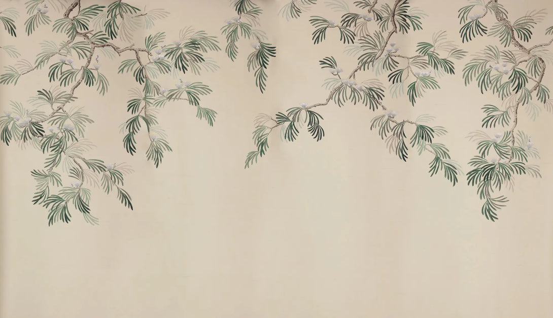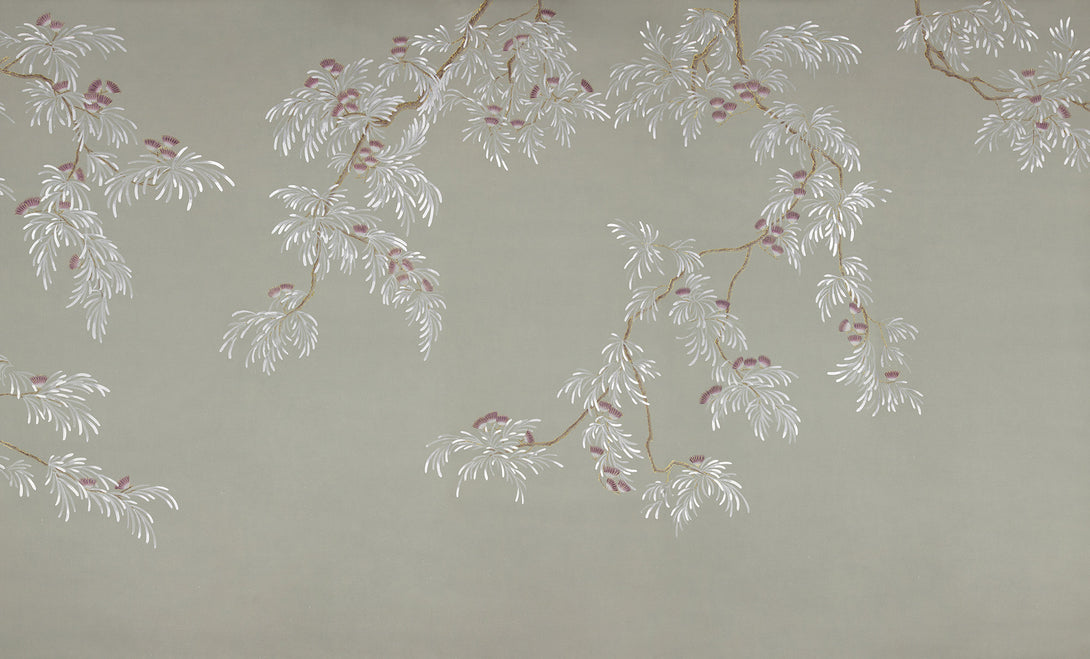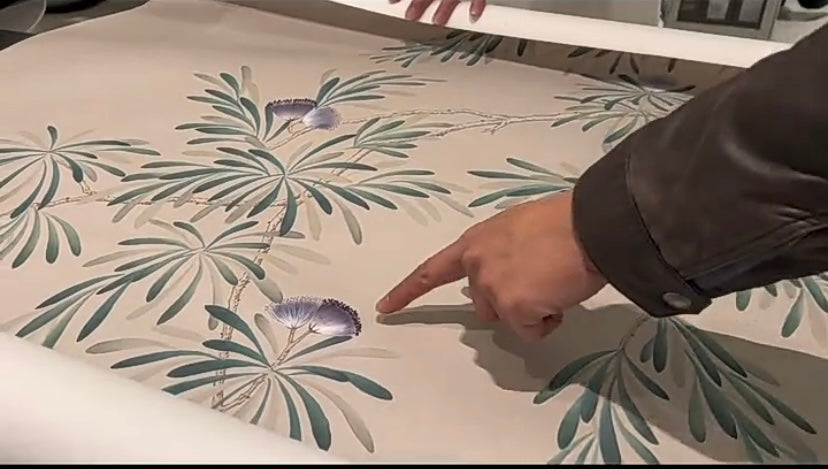 Silk Tree Hand Painted Wallpaper, Custom handpainted silk wallpaper