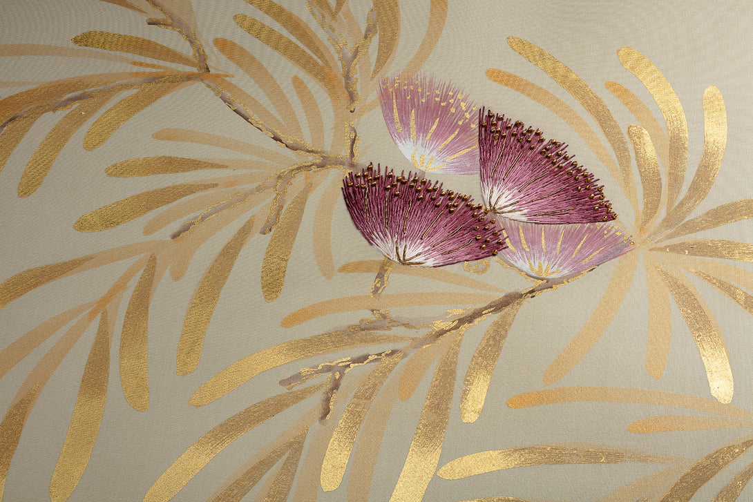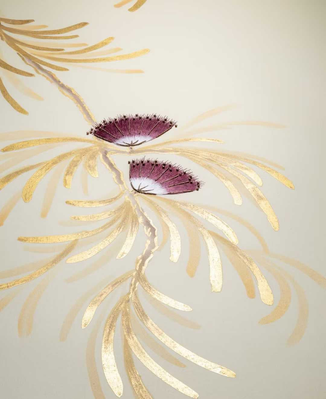 Hand-painted and partial embroidery wallpaper (Dupion-Silk)